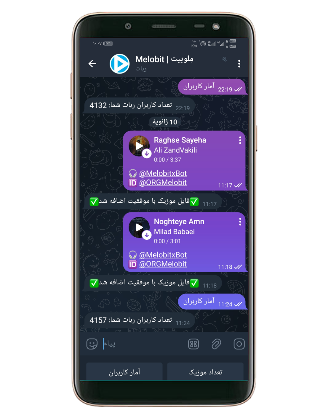 توجه کنید که در اپدیت جدید کاربران هم میتوانند آهنگ های خود را برای ادمین ربات ارسال کنند.
